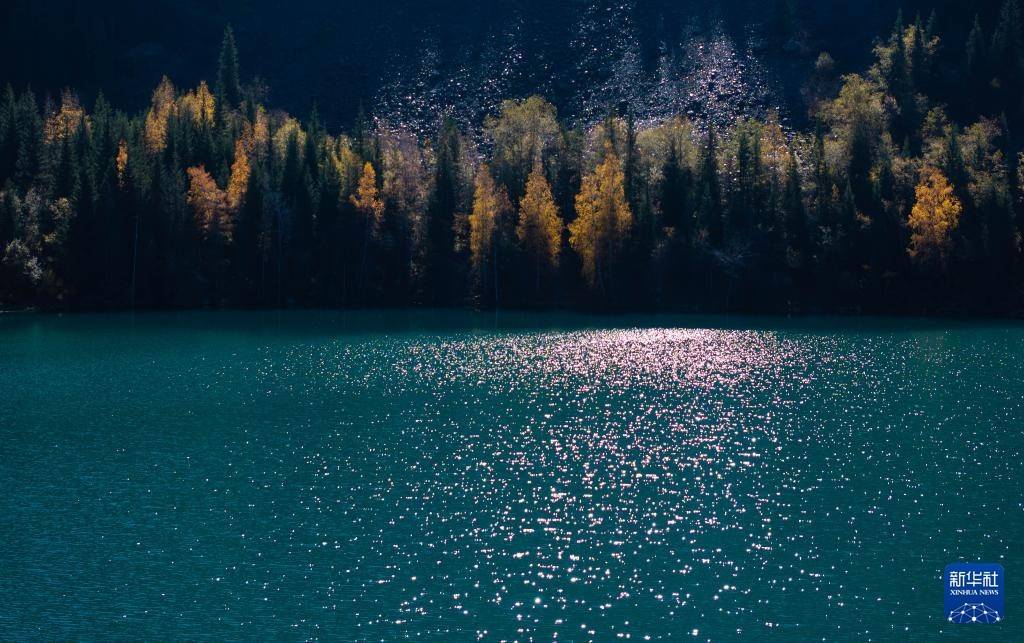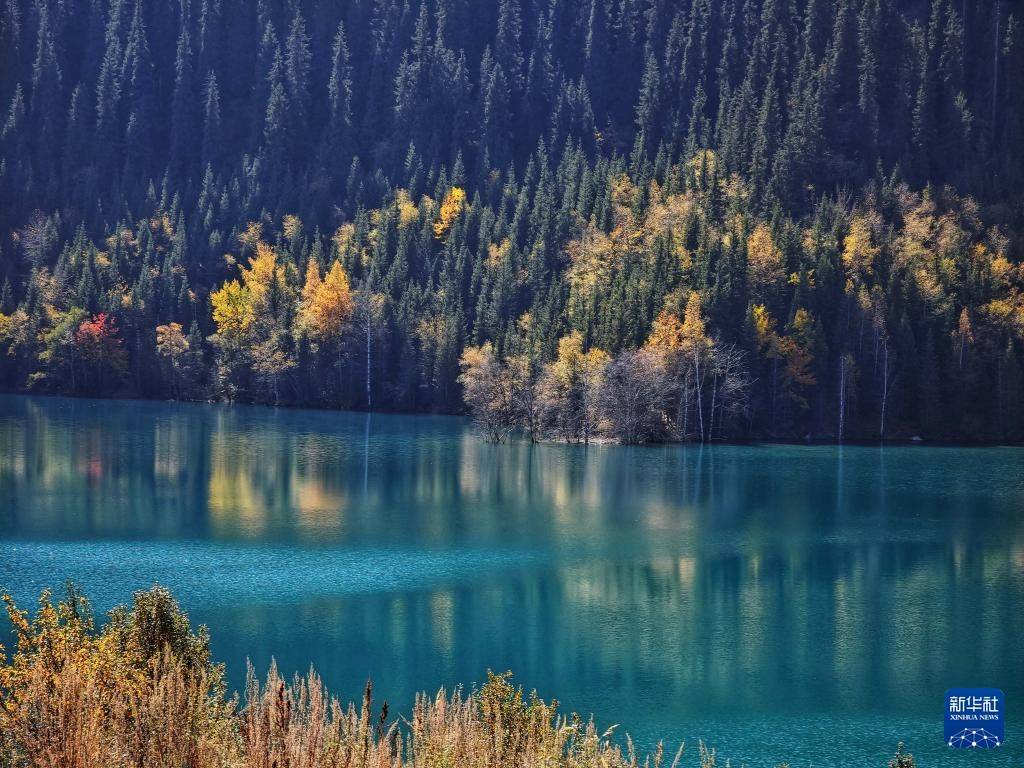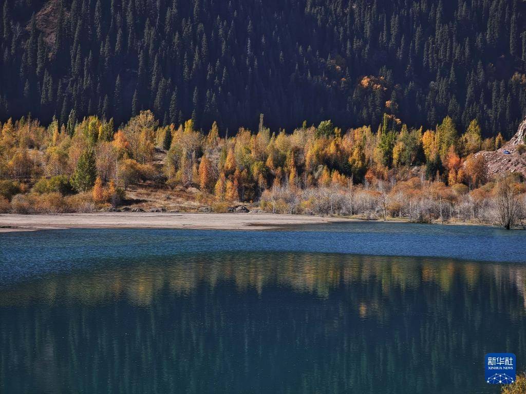 这是10月4日在哈萨克斯坦阿拉木图州拍摄的伊塞克湖秋日风光(手机照片)。