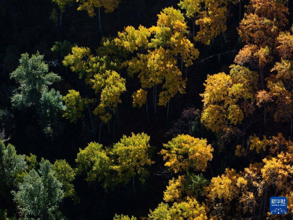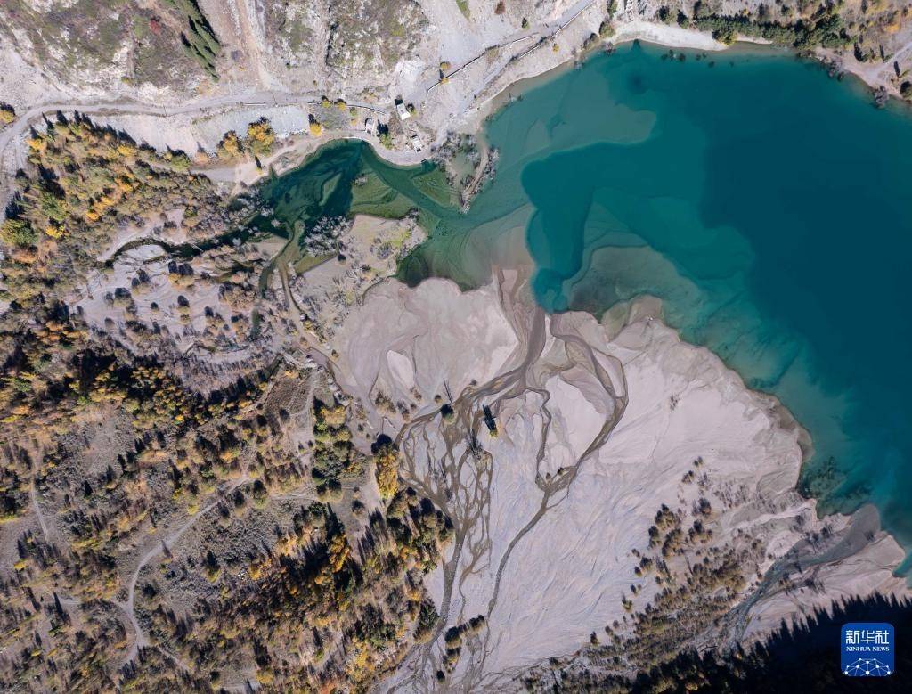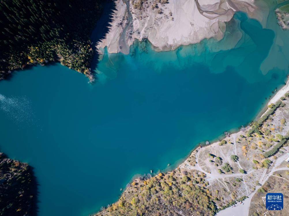 这是10月4日在哈萨克斯坦阿拉木图州拍摄的伊塞克峡谷秋日风光(无人机照片)。