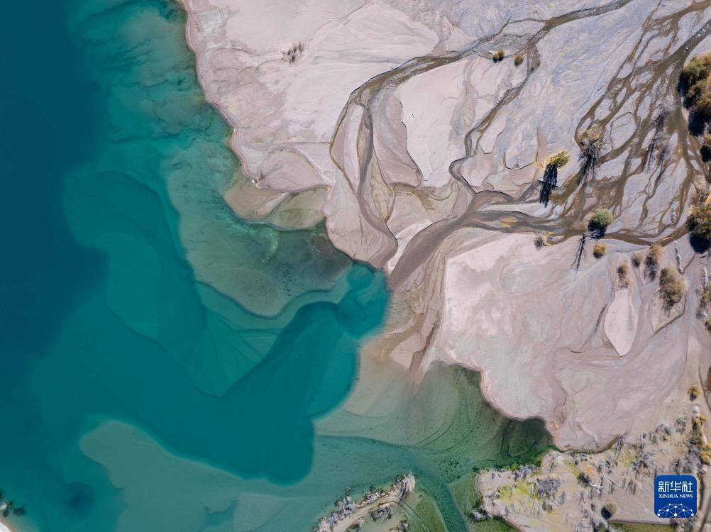 这是10月4日在哈萨克斯坦阿拉木图州拍摄的伊塞克湖秋日风光(无人机照片)。