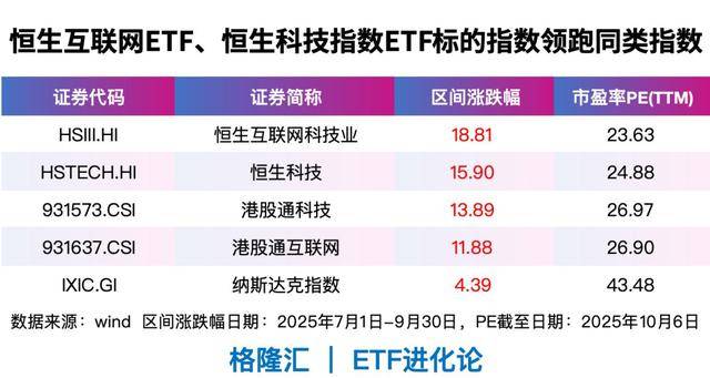 三季度,恒生科技指数ETF(513180)资金净流入额达89.27亿元,恒生互联网ETF(513330)资金净流入额为55.17亿元。