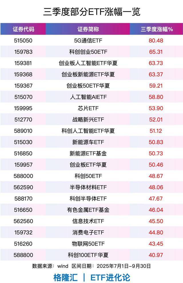 三季度,多只科技主题ETF表现强势,最高涨幅超80%!
