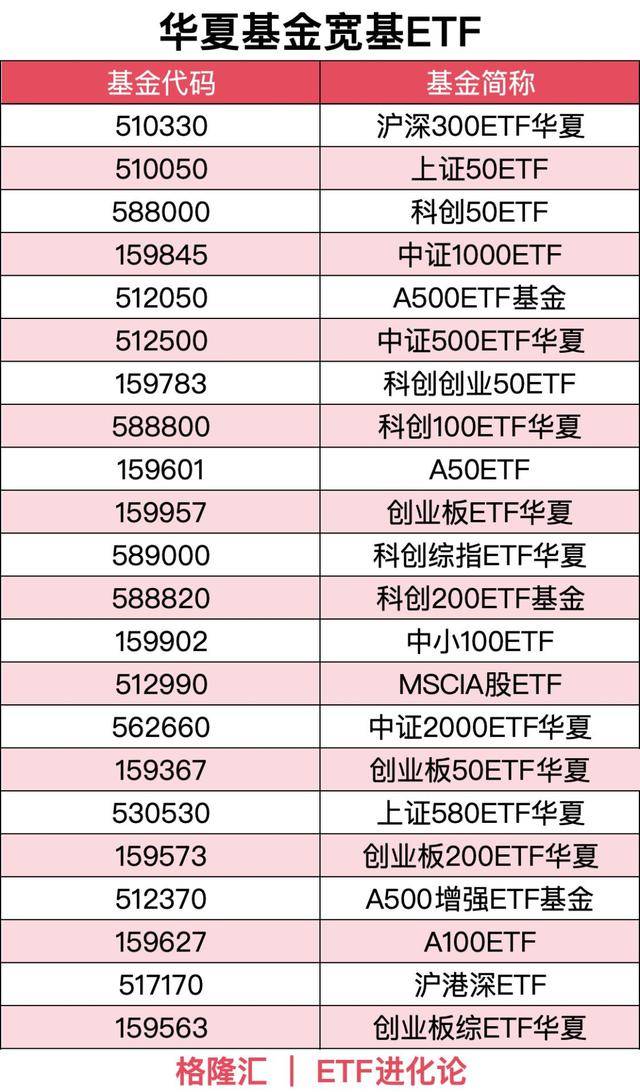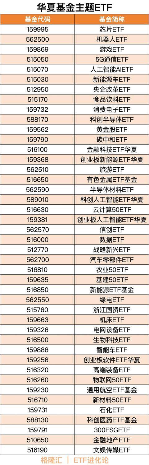 以下是整理的一份华夏基金ETF大合集:
