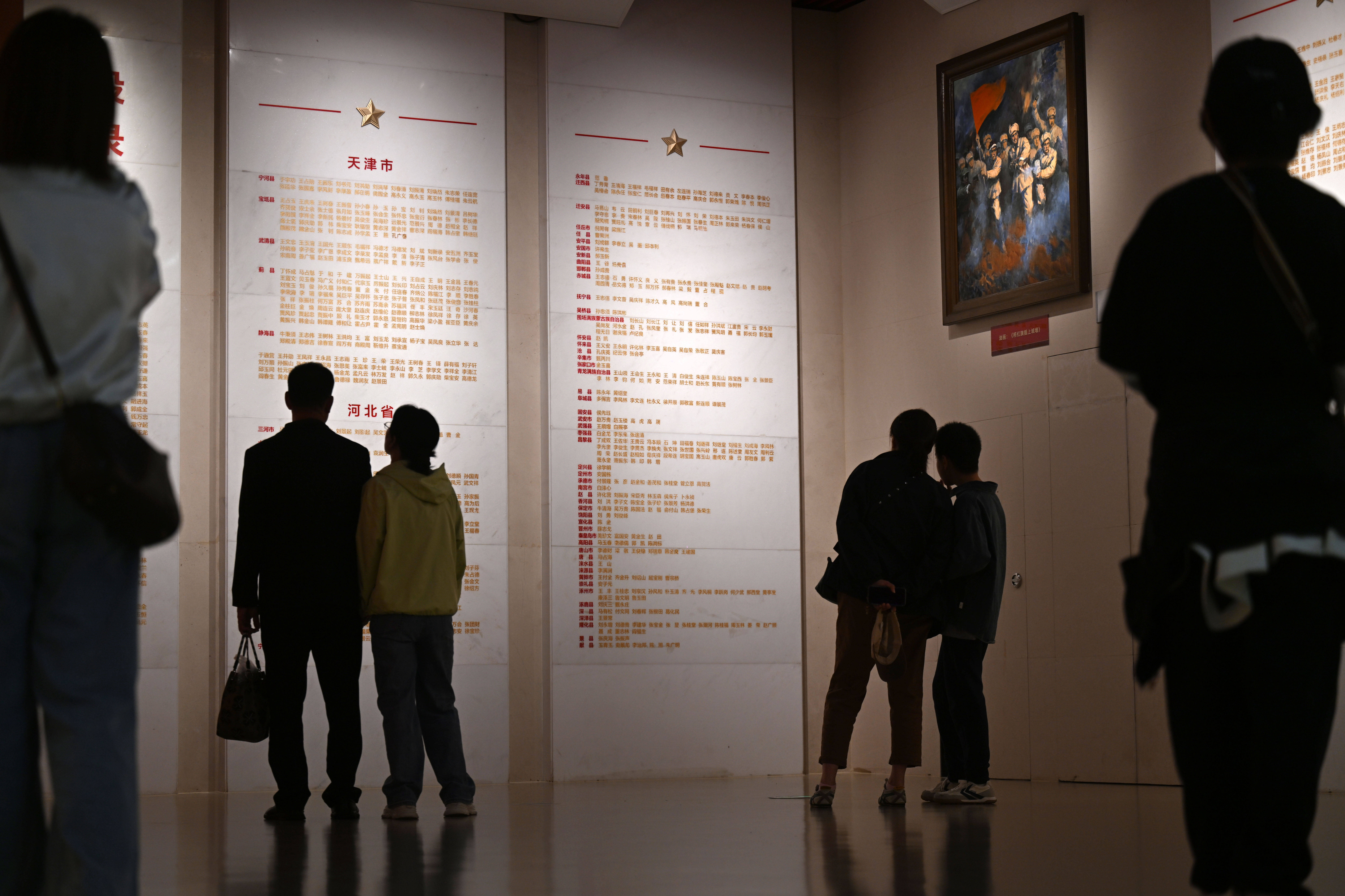 10月8日,游客在天津平津战役纪念馆瞻仰烈士名录墙。新华社记者 赵子硕 摄