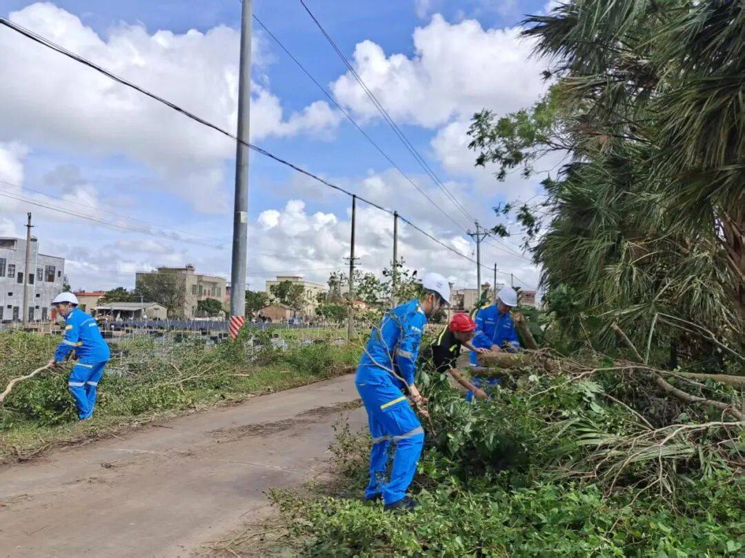 10月6日-7日,在支付宝公益平台及爱心网友的支持下,阳江蓝天救援队协同徐闻县相关部门,在陈迈镇的受灾街道和村庄执行道路清障、电力设施排险及被压房屋排险任务。