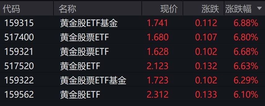 黄金概念股早盘大幅走强,山东黄金涨超9%,中金黄金涨超8%,赤峰黄金、山金国际涨超6%。