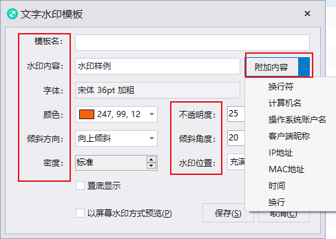 明文水印:自定义水印内容,可显示IP地址、客户端昵称等内容。