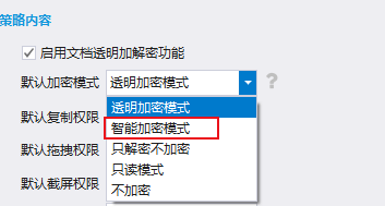 智能加密:设置了这种模式的客户端,本地自己生成的文件都不加密,但是能打开公司内部的加密文件,并且打开这些加密文件去编辑保存后不改变文件的加密状态。