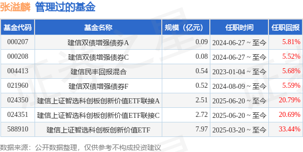 张溢麟先生:中国国籍,硕士。2016年5月毕业于美国芝加哥大学统计专业,同年9月加入建信基金,历任金融工程及指数投资部助理研究员、研究员、基金经理助理兼研究员、投资经理等职务。2023年1月4日起任建信民丰回报定期开放混合型证券投资基金的基金经理;2024年6月27日起任建信双债增强债券型证券投资基金的基金经理;2025年3月20日起任建信上证智选科创板创新价值交易型开放式指数证券投资基金的基金经理。