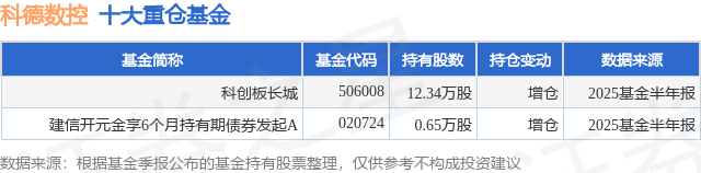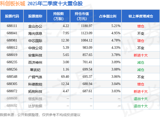 根据2025基金半年报公募基金重仓股数据,重仓该股的公募基金共2家,其中持有数量最多的公募基金为长城基金的科创板长城。科创板长城目前规模为2.2亿元,最新净值1.0663(9月30日),较上一交易日上涨1.88%,近一年上涨64.81%。该公募基金现任基金经理为赵凤飞。赵凤飞在任的基金产品包括:长城改革红利混合A,管理时间为2018年3月8日至今,期间收益率为55.27%;长城智能产业混合A,管理时间为2023年2月10日至今,期间收益率为7.2%。