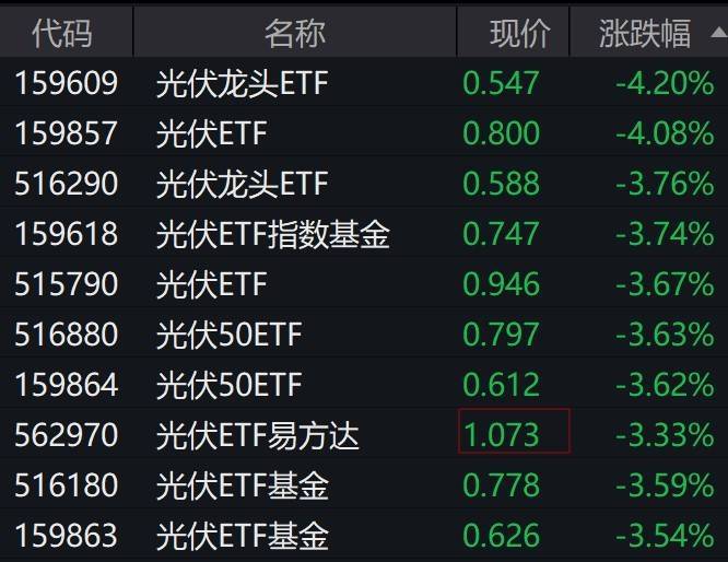 光伏概念股走低,阳光电源、德业股份跌超6%,通威股份、正泰电器跌超3%。