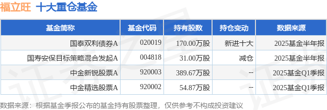 根据2025基金半年报公募基金重仓股数据,重仓该股的公募基金共2家,其中持有数量最多的公募基金为国泰基金的国泰双利债券A。国泰双利债券A目前规模为58.57亿元,最新净值1.8016(10月9日),较上一交易日上涨0.16%,近一年上涨10.73%。该公募基金现任基金经理为陈志华。