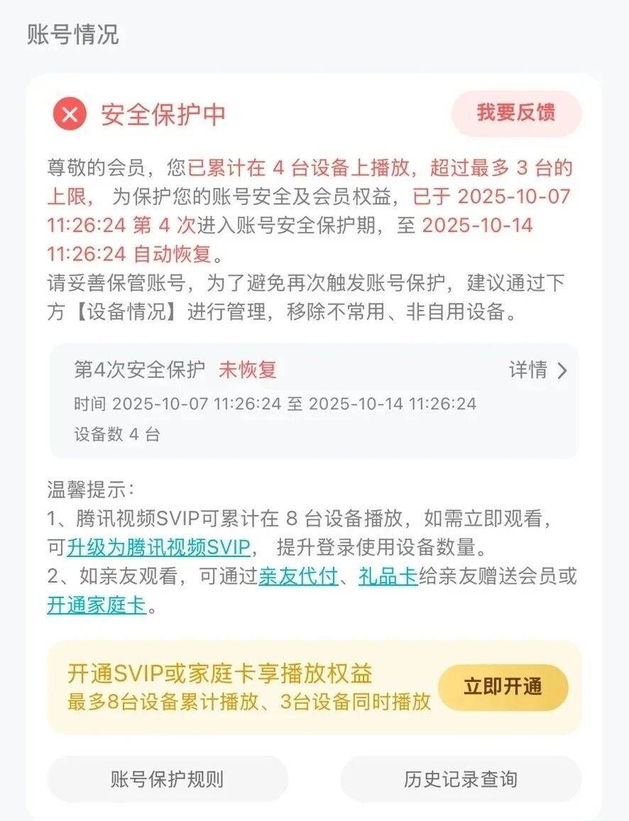 “真金白银买的会员,凭啥封我号?” 腾讯视频VIP设备“防盗”限制与用户“委屈”陷拉锯战