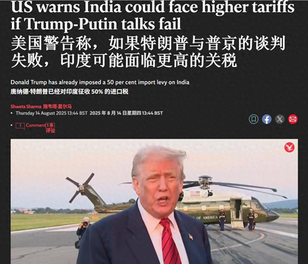 美国近期对印度发出了明确的威胁,警告称如果美国总统川普与俄罗斯总统普京的阿拉斯加会谈失败,印度可能面临高达200%的关税处罚。这一消息无疑让印度震动,尤其是在总统莫迪的政府面临压力的情况下。