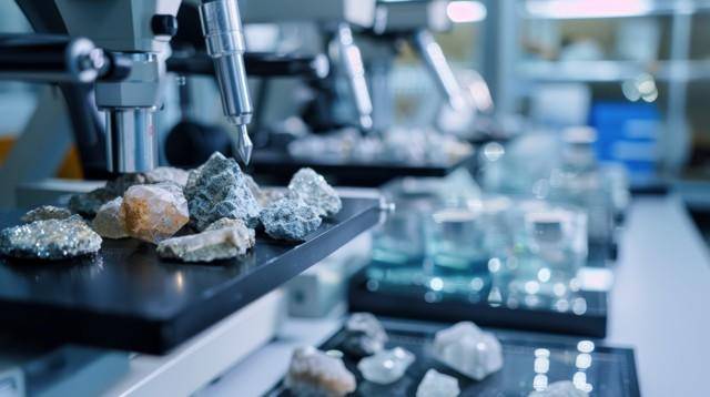 实验室展示架上的稀土矿石 资料图片 图据图虫创意