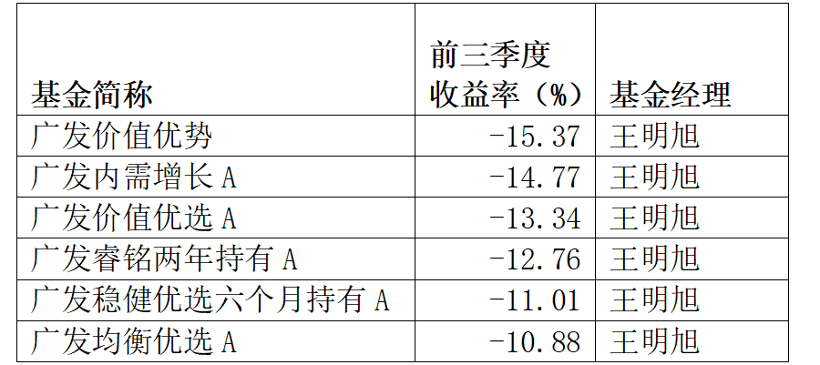 今年前三季度有7只权益类基金的净值跌去10%以上,其中6只由广发基金同一基金经理管理