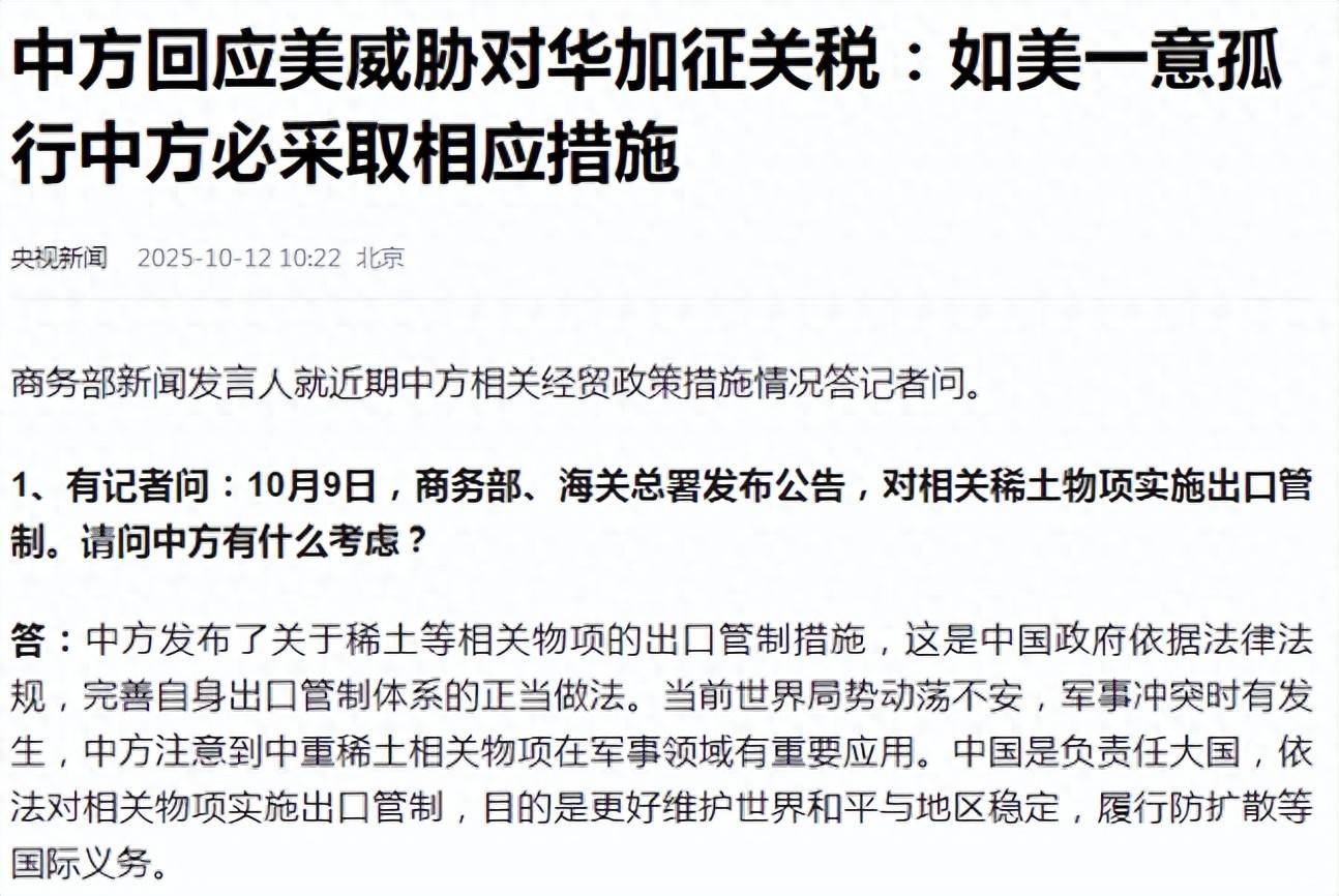 10月9日,中国商务部宣布了更加严格的稀土管制政策,要求任何涉及到中国稀土的出口,特别是用于高端芯片制造的产品,必须逐案审批。这意味着,中国不仅管控了稀土的开采和冶炼,还包括了相关的生产技术,基本堵住了其他国家通过技术拼接的方式发展稀土产业链。