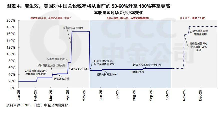 根据中金的测算,100%的对华额外关税会将美国有效税率从当前的 16-17%推升至20%以上甚至更高,或使得核心CPI从当前预期的3.4%到3.5%甚至更高。对中国而言,则是需求冲击, 这在近期宏观基本面普遍走弱的情况下,无异于增加更多下行压力。