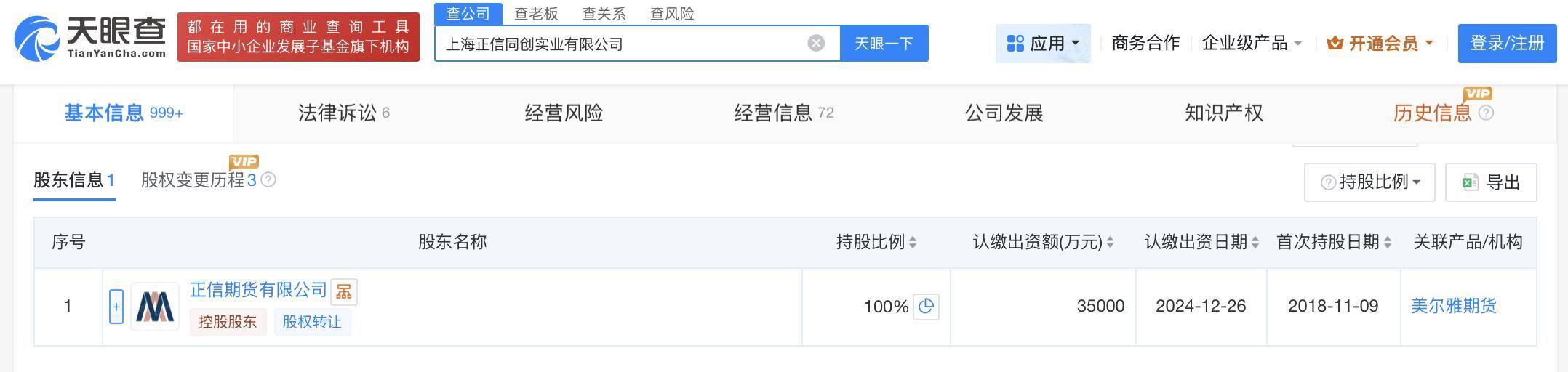 天眼查显示,上海正信同创实业控股股东为正信期货有限公司,湖北证监局也对正信期货有限公司采取了责令增加内部合规检查次数行政监管措施。