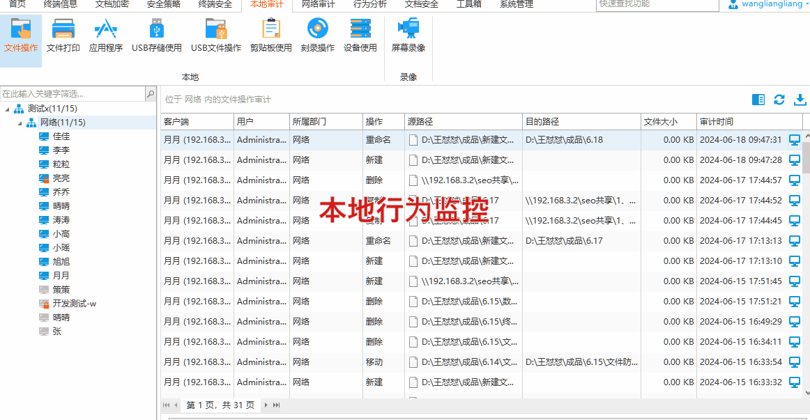 当检测到员工试图将敏感文件复制到U盘、上传至网盘或通过邮件发送时,系统会实时触发报警并阻止操作,同时通知管理员。这一功能将安全防护从“事后追溯”升级为“事中阻断”,大大降低了泄密成功率。