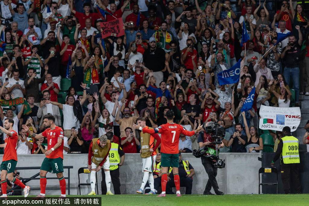 补时第3分钟,葡萄牙反超比分,门德斯前场左路传中,C罗后点轻松推射梅开二度,继续刷新纪录。