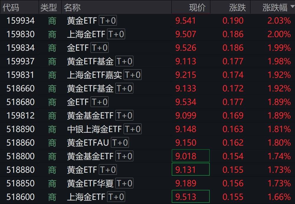 受盘面影响,商品黄金相关ETF早盘涨约2%。