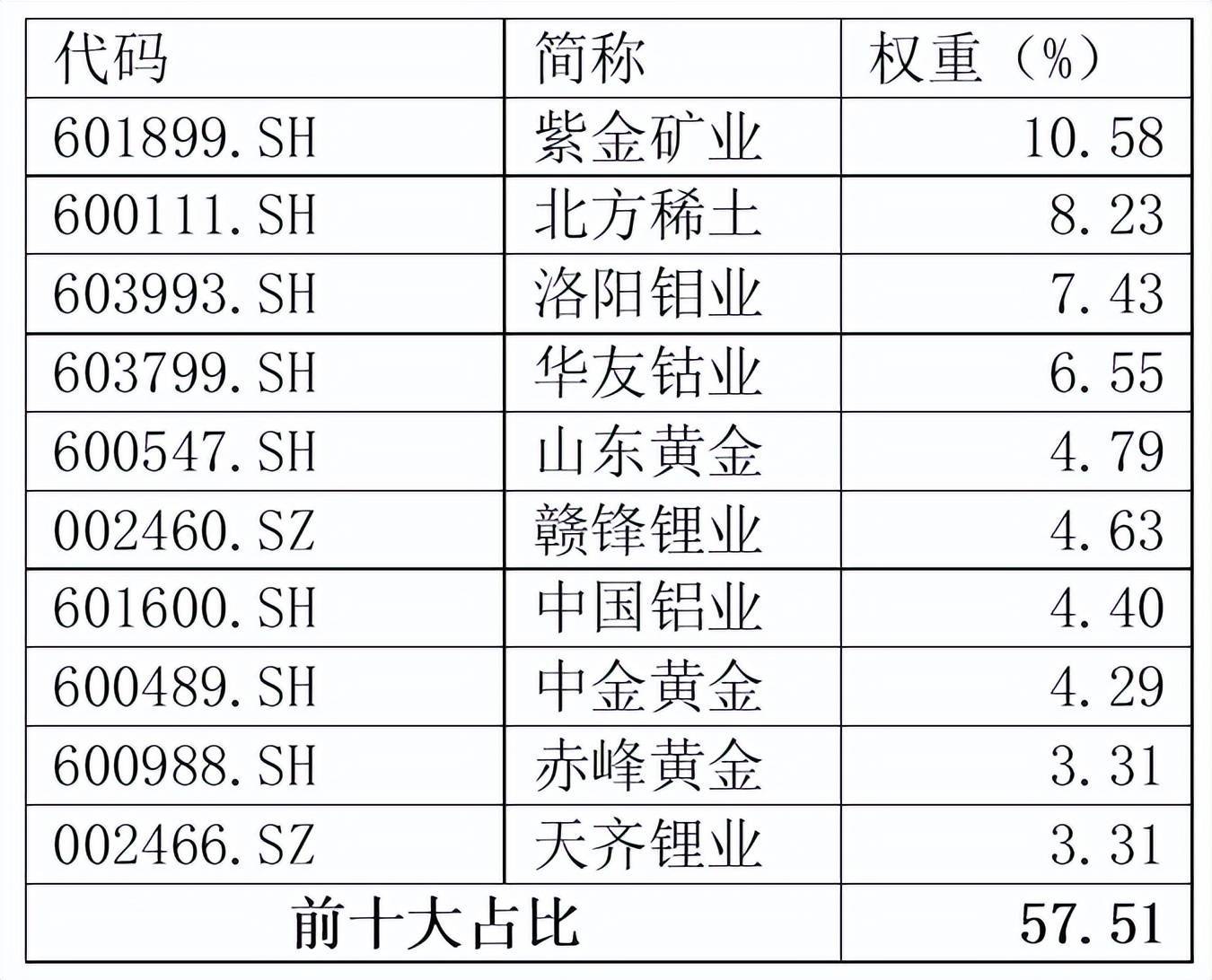 从前十大成分股来看,清一色“家里有矿”资源龙头,前十大占比合计超57%,集中度相对也更高,锐度十足。