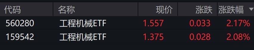 受盘面影响,跟踪中证工程机械主题指数的工程机械ETF涨超2%。