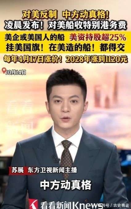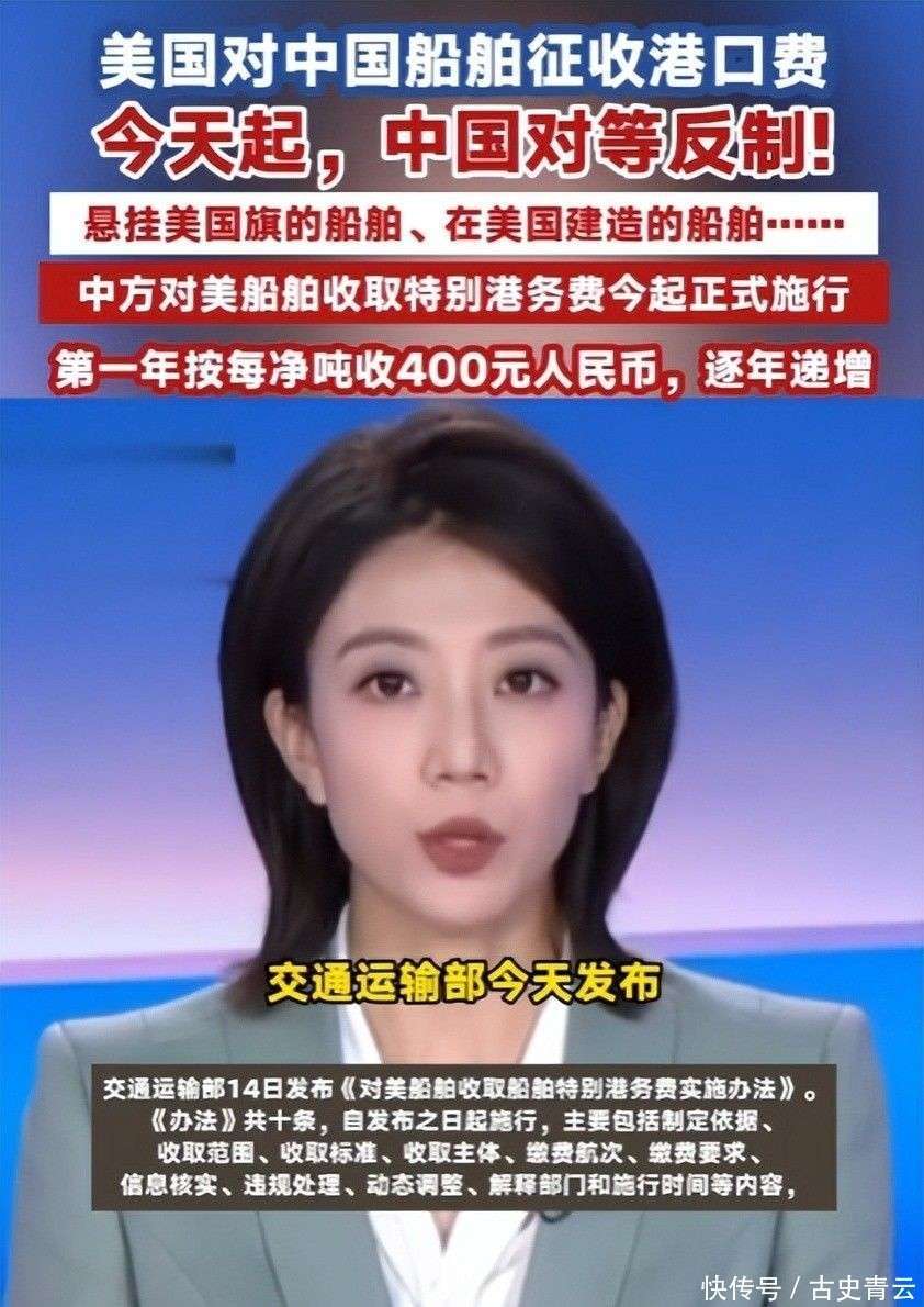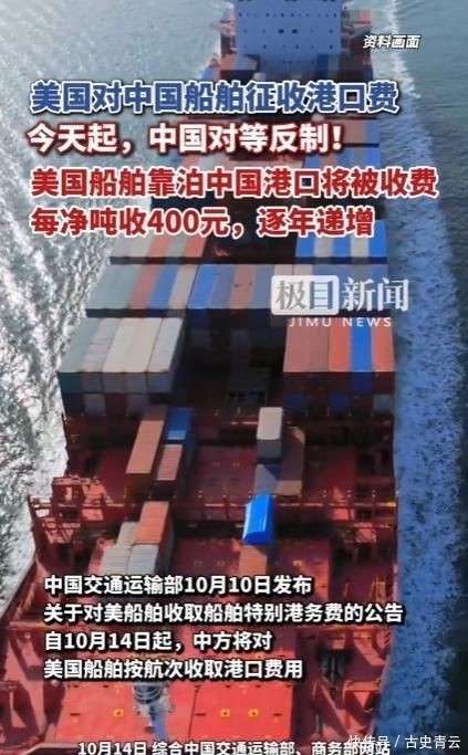 与美国的“威胁—缓和”策略不同,中国的反制措施却迅速且精准。10月14日,中国交通运输部发布了关于对美国船舶征收特殊港务费的办法,并立即实施。这项政策的出台几乎是在12小时内完成的,展现了中国的高效反应。这项新政策规定,所有由美国企业拥有、运营或持股超过25%的船只,以及美国国旗或美国建造的船只,都需缴纳港务费。而中国制造的船只以及用于维修且为空载状态的船只则可以豁免。
