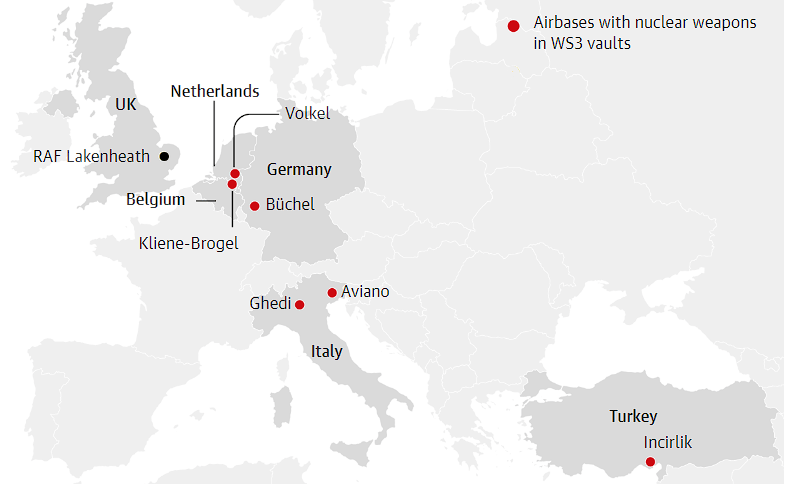 与此同时,2025年6月24日,英国宣布从美国购买12架新型可携带核弹头的F-35A战机,并有意加入北约的核共享任务。这些飞机将部署在位于莱肯希思附近的马勒姆皇家空军基地,该基地也拥有类似的冷战核遗产,最终也将在2030年代配备用于部署美国核重力炸弹的设施。