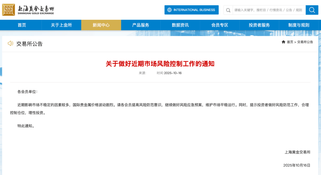 10月16日,上海黄金交易所发布《关于做好近期市场风险控制工作的通知》: