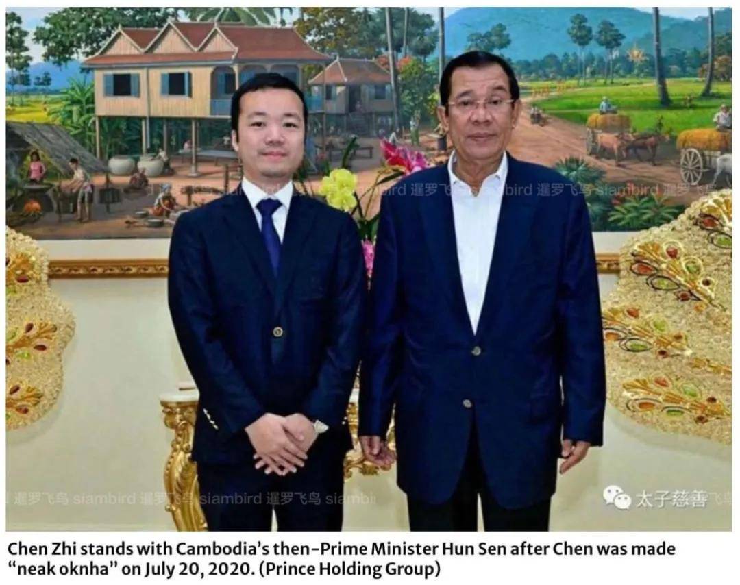 图:陈志于2020年7月20日被授予柬埔寨“王储”称号后,与时任柬埔寨首相洪森并肩而立。(太子集团官方图)