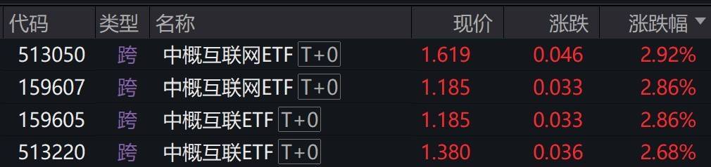 受盘面影响,中概互联网ETF、中概互联ETF涨近3%。