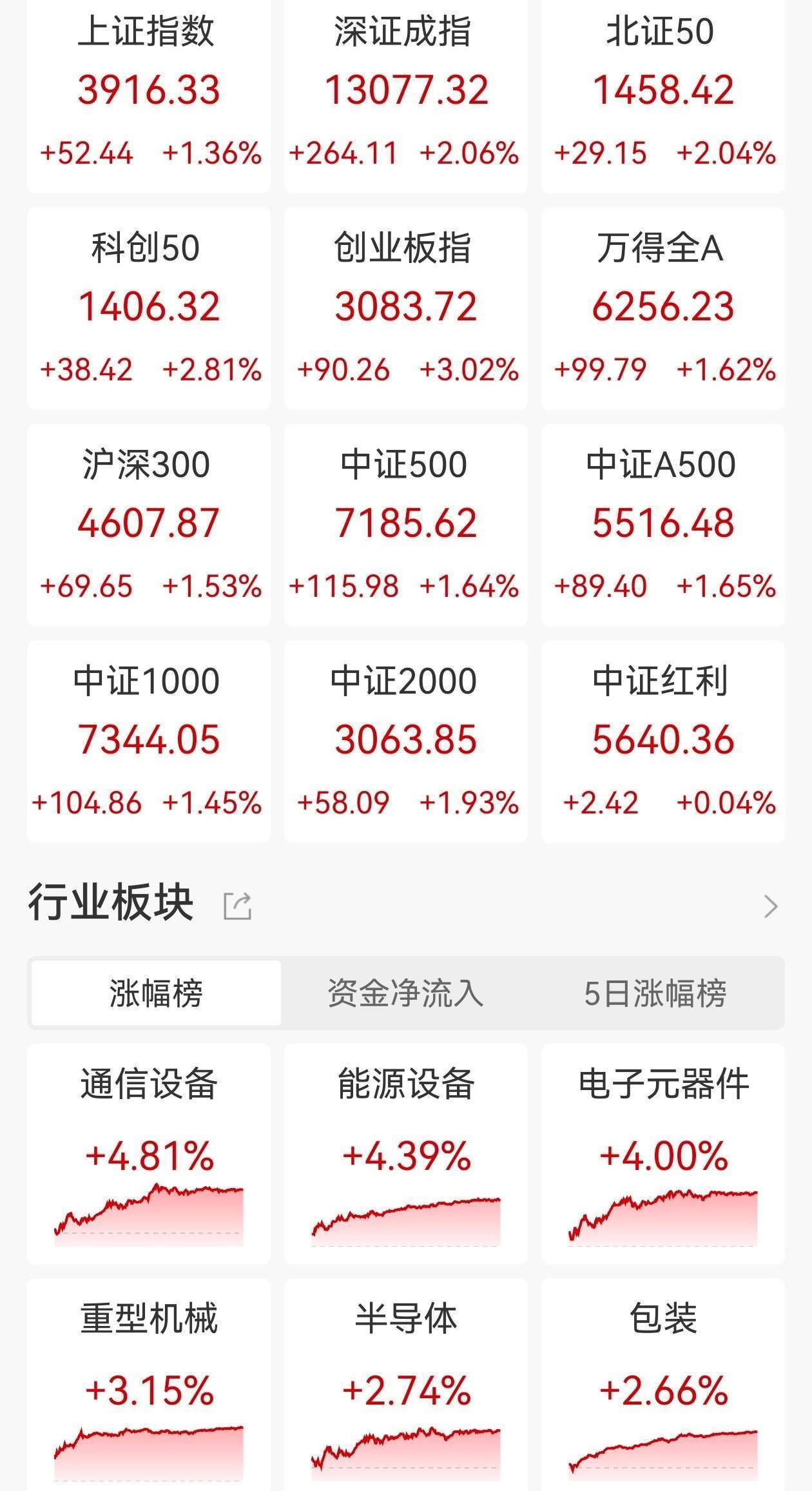 格隆汇10月21日|A股三大指数今日集体上涨,截至收盘,上证指数涨1.36%,深证成指涨2.06%,创业板指涨3.02%,北证50涨2.04%。沪深京三市全天成交额18927亿元,较上日放量1414亿元。全市场超4600只个股上涨。板块题材上,页岩气、苹果概念、工程机械、CPO、房地产、存储芯片板块涨幅居前;煤炭、燃气、贵金属板块表现落后。