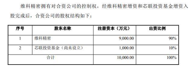 10月22日,维科精密(301499.SZ)发布公告,公司拟与芯联基金共同投资半导体产业配套精密零部件及自动化产线的研发、设计、生产及销售项目。绍兴维新优科精密零部件有限公司作为投资项目实施主体,注册资本为1亿元人民币。维科精密持股90%,芯联投资基金持股10%。投资总额为4.9亿元人民币,差额部分计入资本公积。