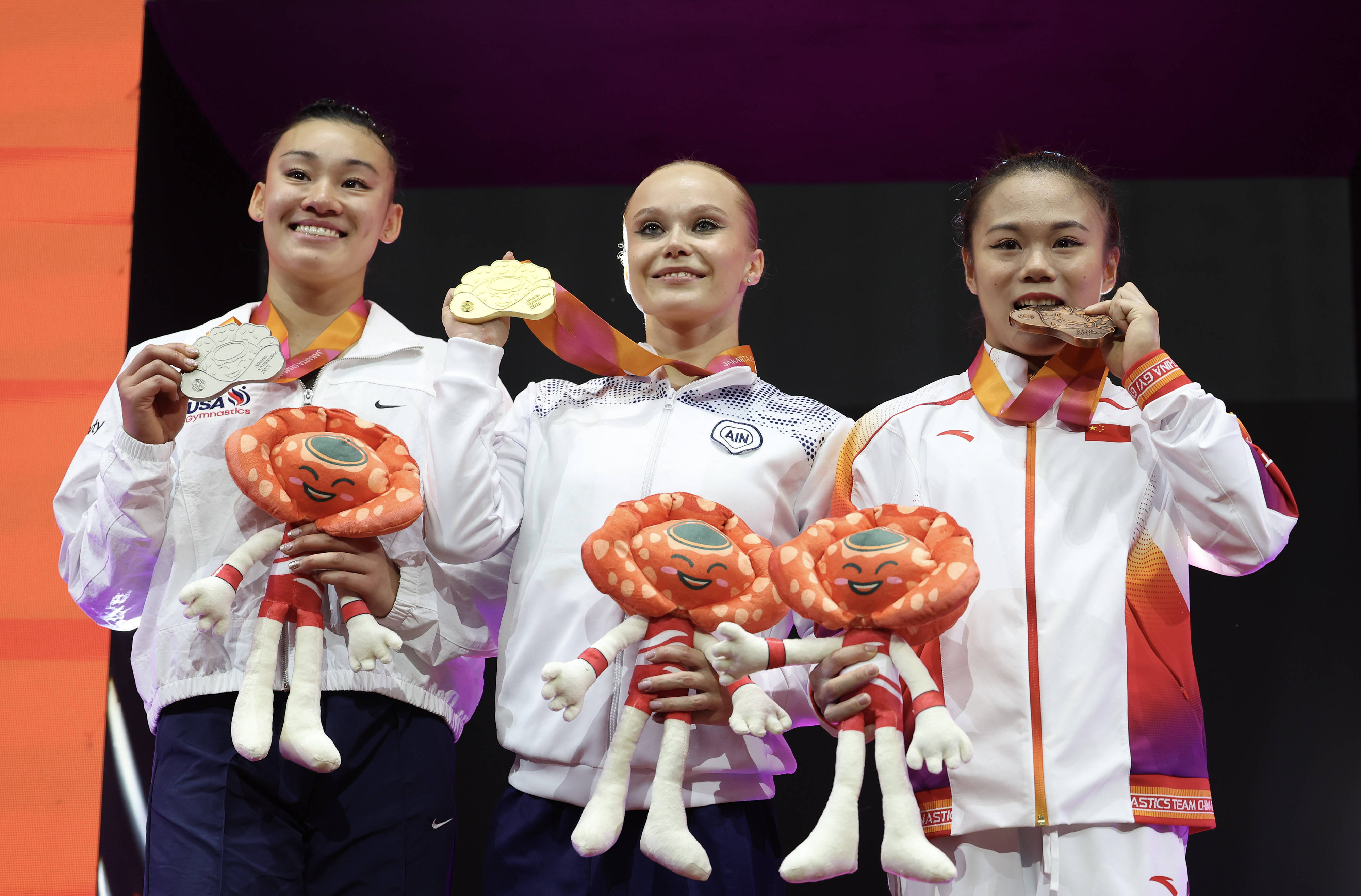 当日,在印度尼西亚雅加达进行的2025年国际体操联合会(FIG)竞技体操世锦赛女子个人全能决赛中,中国选手张清颖获得季军。
