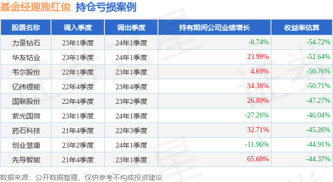 施红俊管理的鹏扬中证科创创业50ETF联接A基金在23年1季度买入力量钻石,在持有1年又0个季度后在24年1季度卖出。持有期间的估算收益率为-54.72%,持有期间力量钻石在2023年到2024年的年报营业总收入降幅为8.74%。