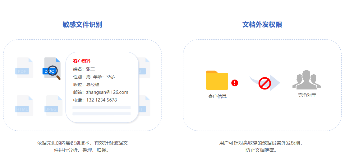Ping32 内置行业敏感数据识别库,能够扫描文档内容,识别出身份证号、手机号、银行卡号等敏感信息。 对于包含敏感内容的文档,系统会自动进行加密处理,确保数据安全。