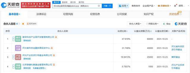 天眼查工商信息显示,近日,河北创业股权投资基金合伙企业(有限合伙)成立,执行事务合伙人为北京骐健私募基金管理有限公司,出资额12.6亿人民币,经营范围包括创业投资、以自有资金从事投资活动等。合伙人信息显示,该基金由雄安科技产业园开发管理有限公司、河北省科技金融发展促进中心、河北产业投资引导基金有限公司等共同出资。