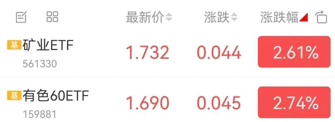 10月27日有色60ETF(159881)、矿业ETF(561330)均涨超2.5%,延续了上周以来的涨势。