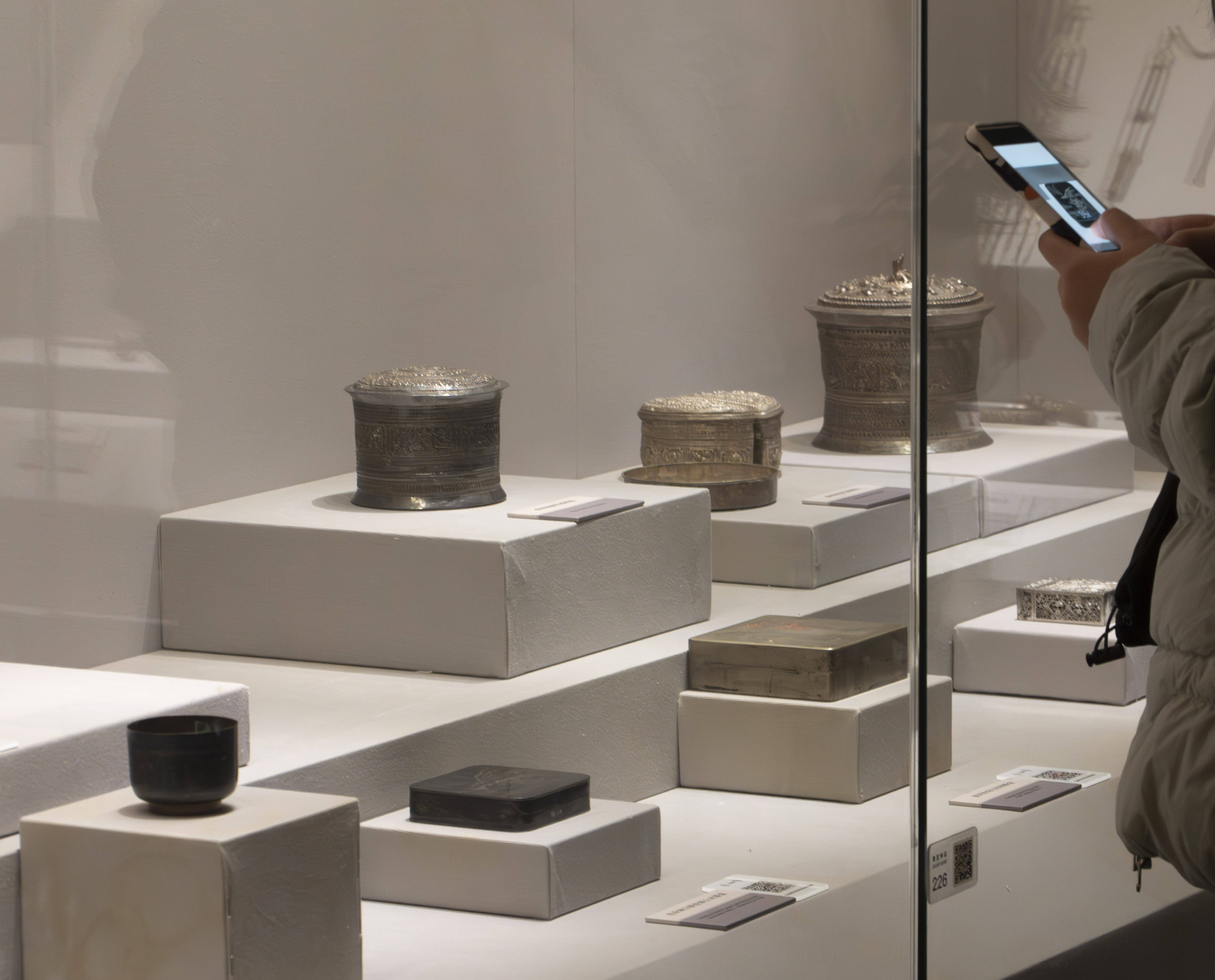 10月25日,观众在云南省博物馆拍摄乌铜走银墨盒。 新华社记者 江文耀 摄