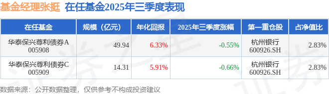 证券之星消息,截止2025年三季度末,基金经理张挺旗下共管理2只基金,本季度表现最佳的为华泰保兴尊利债券A(005908),季度净值跌0.55%。