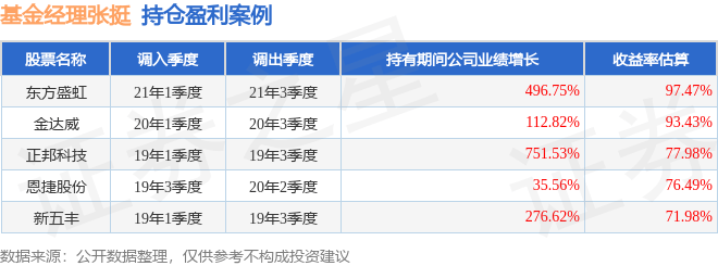 张挺管理的华泰保兴尊利债券A基金在21年1季度买入东方盛虹,在持有2个季度后在21年3季度卖出。持有期间的估算收益率为97.47%,持有期间东方盛虹在2020年到2021年的年报归属净利润增幅达496.75%。