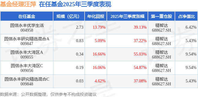 汪萍管理的圆信永丰大湾区A基金在21年2季度买入星源材质,在持有1个季度后在21年3季度卖出。持有期间的估算收益率为97.42%,持有期间星源材质在2020年到2021年的年报归属净利润增幅达133.49%。