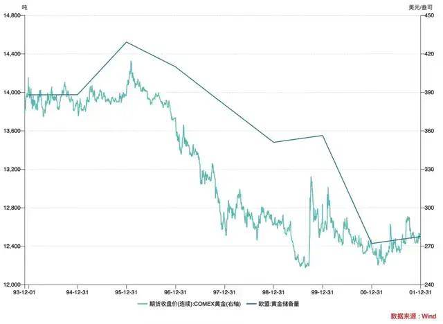 图:COMEX金价与欧盟黄金储备;资料来源:wind,36氪