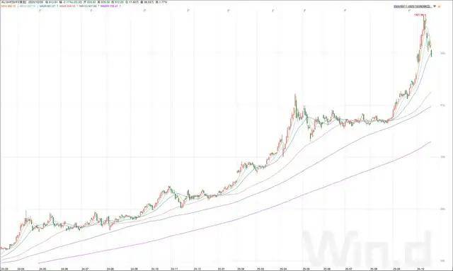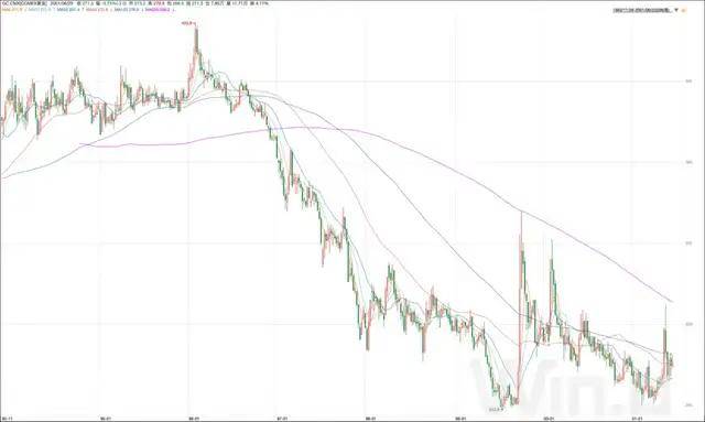 图:SHFE黄金价格走势;资料来源:wind,36氪