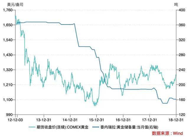 图:委内瑞拉黄金储备与COMEX金价;资料来源:wind,36氪