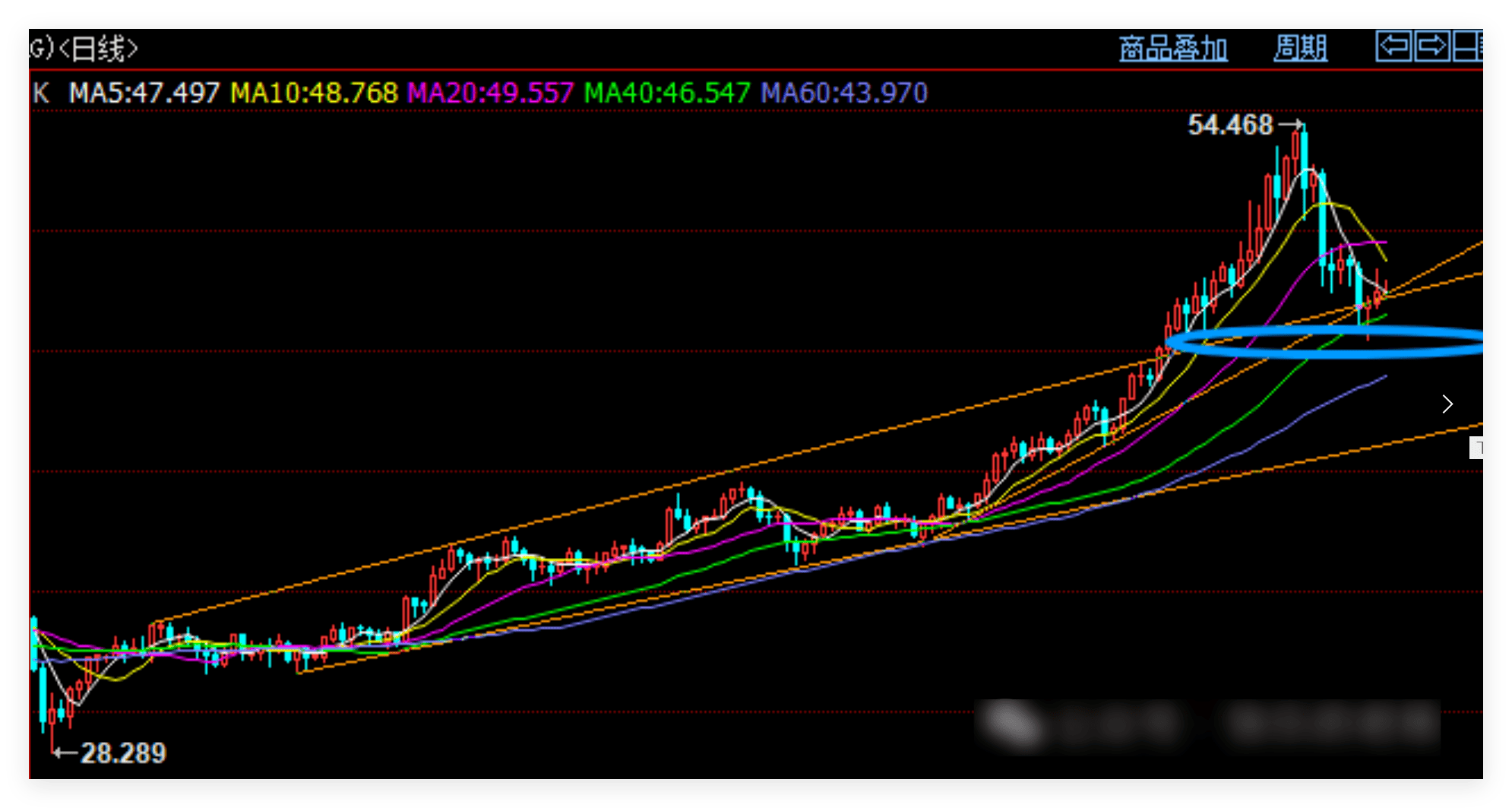 国际白银,白银中期支撑后于45.5附近止跌企稳并成功反弹后,昨日最高一度触及48.5附近,之后跟随黄金回落。接下来预计将扫荡,但45.5区域不能破,一旦破位多头优势不再。