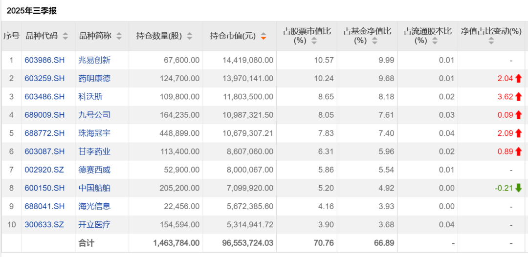 具体来看,截至三季度末,兆易创新、德赛西威、海光信息、开立医疗成为南方中国梦混合基金新进前十大重仓股。