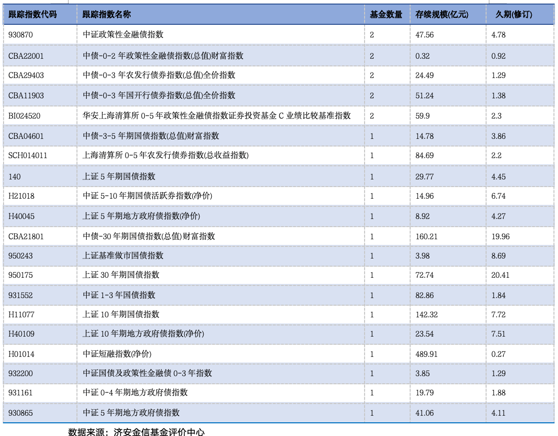四、利率债指数基金细分分类