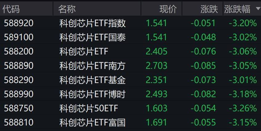 科创芯片概念股走弱,澜起科技跌超7%,中微公司、沪硅产业、华海清科跌超4%。
